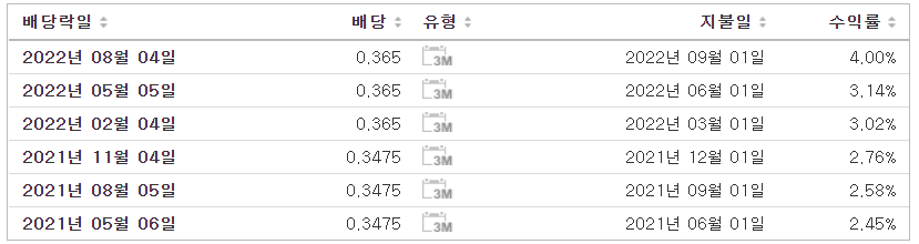 * 배당 지급일(PAYMENT DATE) : 배당이 실제 주주들에게 지급되는 날입니다.