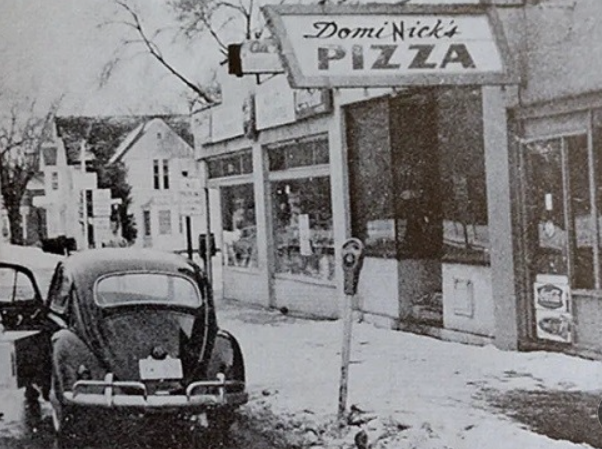 1960년, 톰 모나한과 그의 동생 제임스는 미시간주 입 실란 티의 크로스 스트리트 507번지(현재 301 웨스트 크로스 스트리트에 도미닉 드바르티가 소유하고 있던 작은 피자 레스토랑 체인의 기존 위치)인 도미닉의 운영을 인수했습니다.