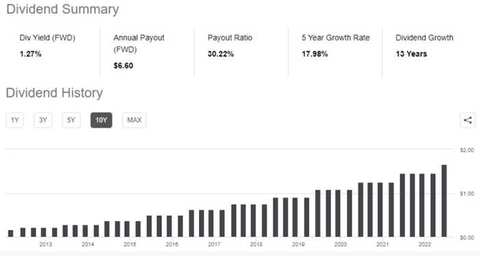 배당수익률은 여전히 낮지만 최근 5년간 연평균 배당 성장률은 17.98%이고 배당성향도 낮아 향후 상당한 배당 성장을 기대할 수 있습니다.
