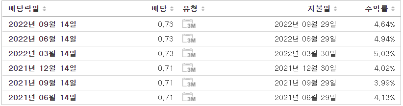 * 배당 지급일(PAYMENT DATE) : 배당이 실제 주주들에게 지급되는 날입니다.