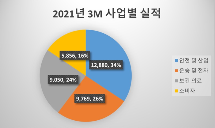 3M은 55,000개 이상의 제품을 생산하기 때문에 어느 한 분야에 특화되어 있다고 말하기 어렵습니다.