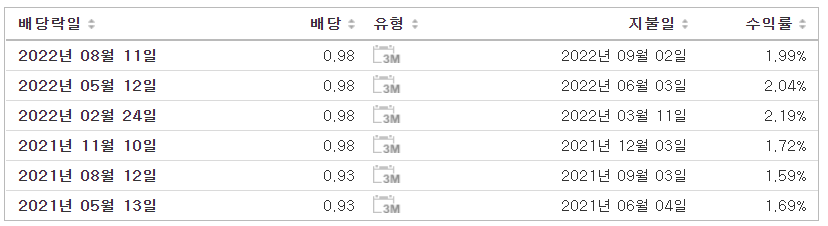 * 배당 지급일(PAYMENT DATE) : 배당이 실제 주주들에게 지급되는 날입니다.