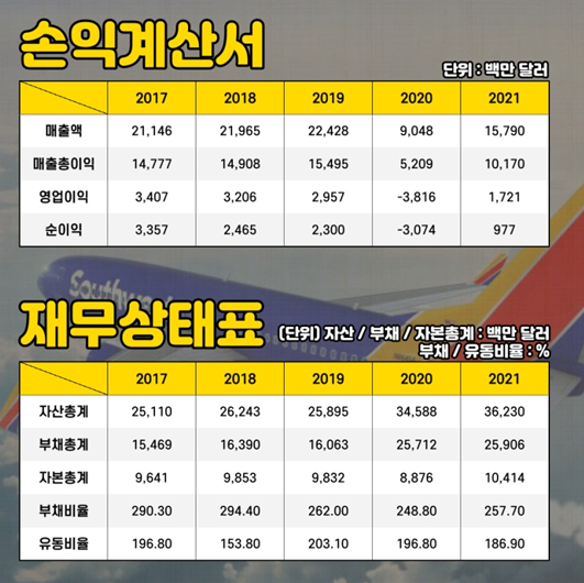 오늘 다룰 미국 회사는 2020년 코로나바이러스 발병 이전 47년 동안의 흑자 기록으로 가장 잘 알려졌던 미국 1위 저가 항공사(LCC)인 사우스웨스트 항공입니다.