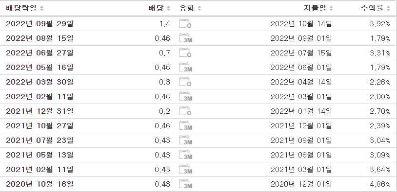 * 배당 지급일(PAYMENT DATE) : 배당이 실제 주주들에게 지급되는 날입니다.