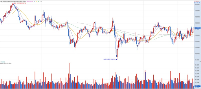 IBM은 시가총액 165조 달러로 미국 주식시장 시가총액 129위를 기록하고 있는 기업입니다.